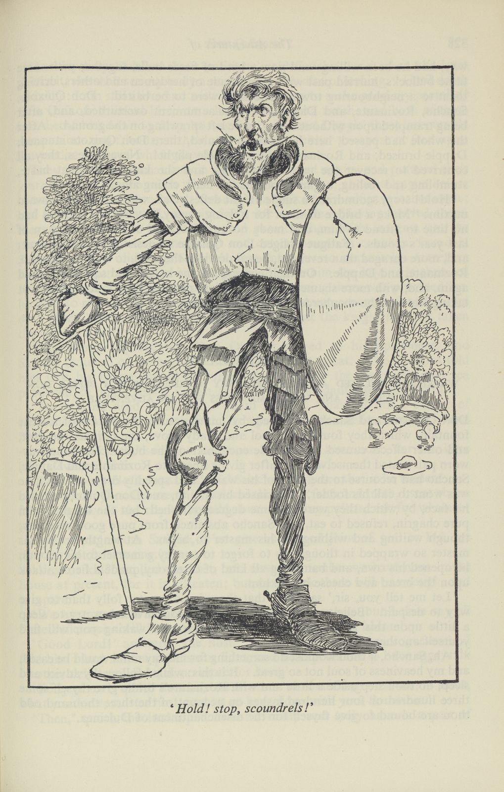 | Commentary | After being trampled by a herd of bulls, don Quixote stands up and shouts to the herd; also in the scene, Sancho.