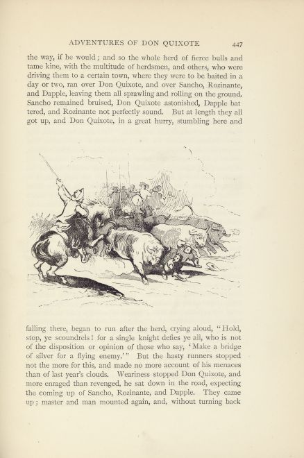 | Commentary | A drove of bulls tramples don Quixote and Sancho (scene in the background without too many details).