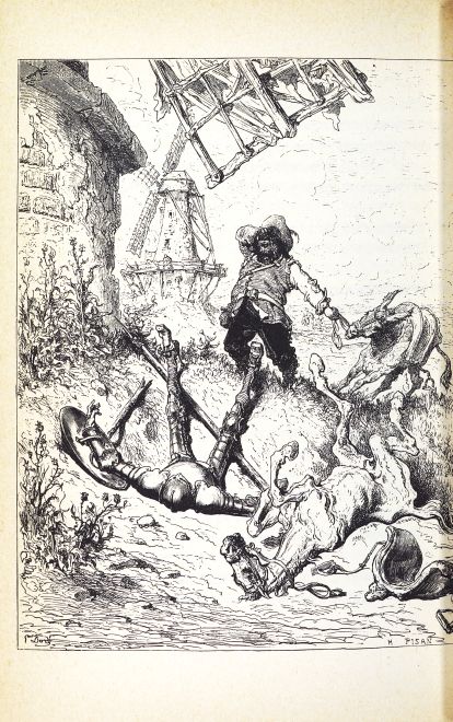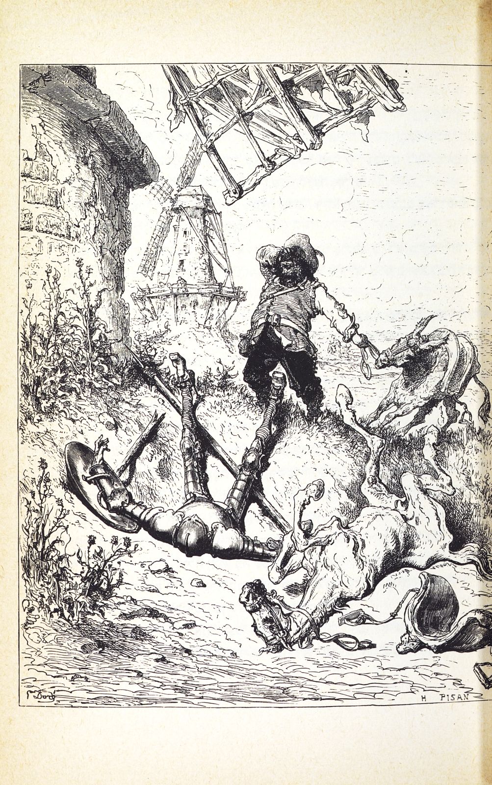 | Commentary | Sancho finds don Quixote unable to move after having been beaten by the windmill sail; also Rocinante. |