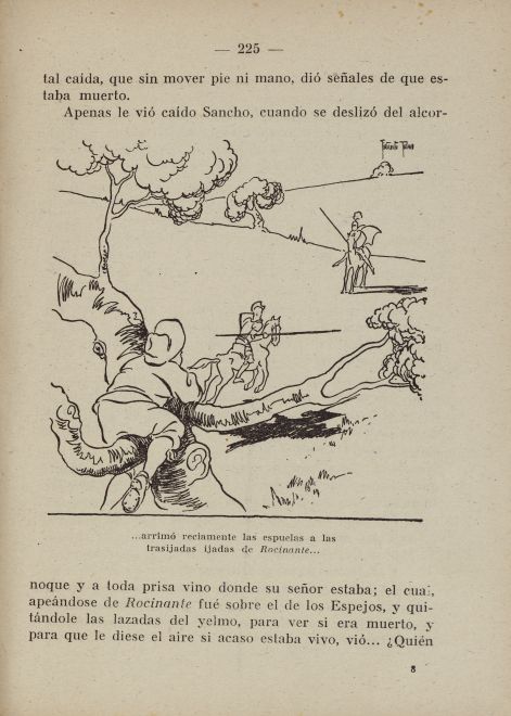 | Title Caption | ... arrimó reciamente las espuelas a las trasijadas ijadas de Rocinante... |
