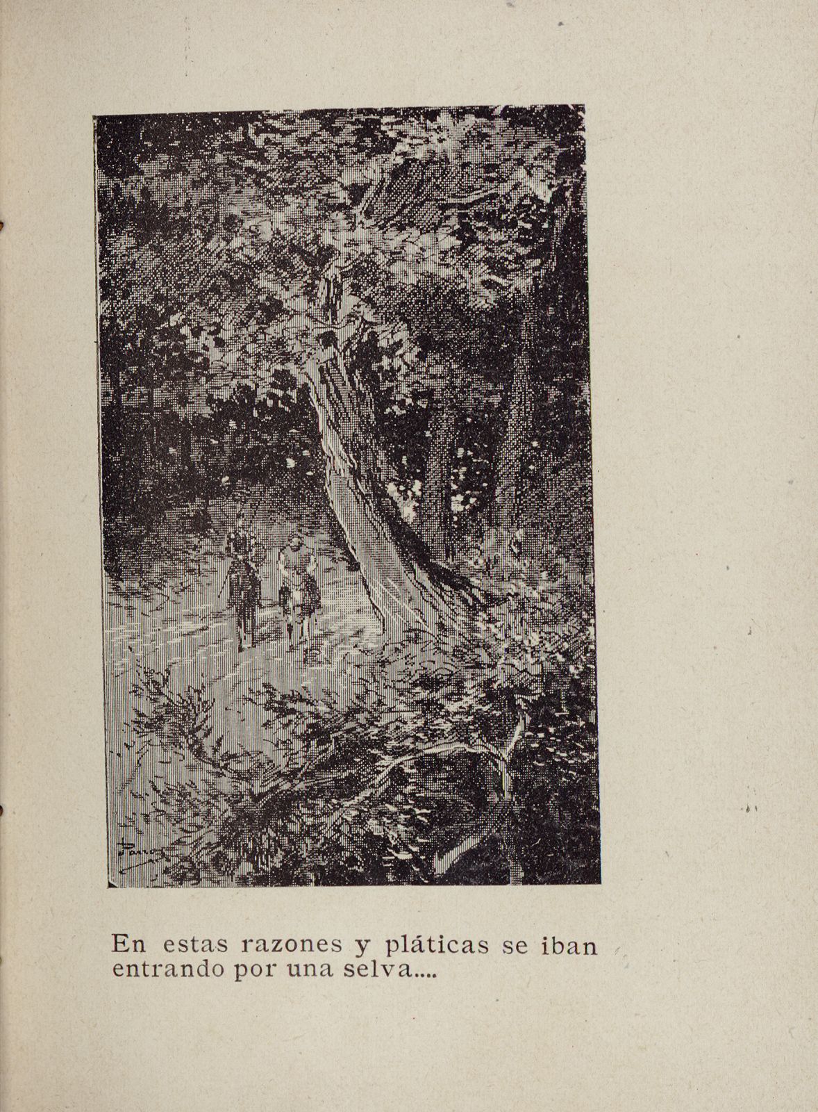 | Title Caption | En estas razones y pláticas se iban entrando por una selva.... |