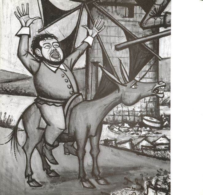 | Commentary | B/w detail from previous illustration in color "Don Quichotte et les moulins à vent".